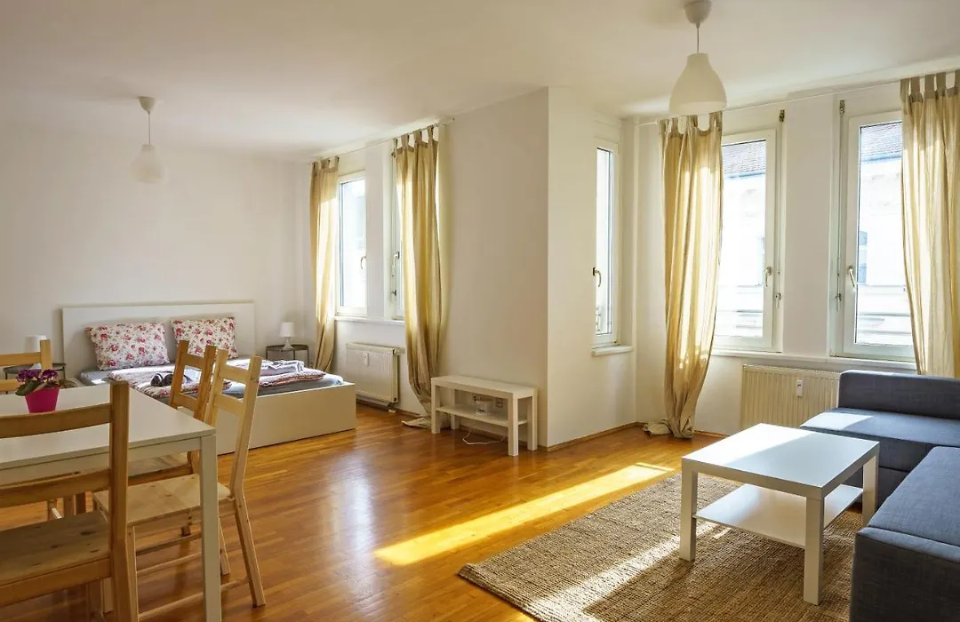 Vienna Living Apartments - Lerchenfelder Strasse are vedere la curte și include o zonă de relaxare dotată cu o canapea și un birou. Acest apartament are, de asemenea, podele din parchet. O baie este dotată cu o cadă și o toaletă separată, împreună cu un uscător de păr și prosoape de baie, care sunt, de asemenea, furnizate.